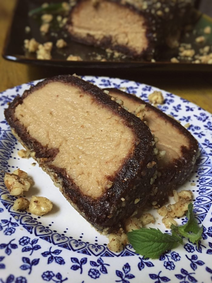 W ostatnim okresie jakoś nie miałem zbyt dużego kontaktu z kaszą jaglaną i jej słodkim obliczem. Co prawda przewijała się w burgerach, sałatkach, czy innych wytrawnych daniach, ale gdzieś w ferworze walki zapomniałem jak dobrze radzi sobie w deserach. W związku z tym, że przez ostatni tydzień katowałem się wspomnieniami o ciastach, postanowiłem przyrządzić coś, co będzie wyraźnie słodkie i bez problemu będzie żonglować moimi kubkami smakowymi. Postanowiłem po raz kolejny wykorzystać ostatnio ulubione przeze mnie masło orzechowe, które przy lodach i śliwkowej polewie rzuciły mnie na kolana. Wiedziałem, że muszę przyłożyć się, by to przebić, choć poprzeczka została zawieszona bardzo wysoko. W pierwotnej wersji chciałem zwinąć ciasto, zachowując formę rolady, ale pośpiech i zdecydowanie za duża ilość jaglanej masy, zdecydowały za mnie. Skończyło się na zamknięciu ciemnej masy i zawinięciu w cukierek. Takie posunięcie sprawdziło się idealnie i następnego dnia, mruczałem z zachwytu.