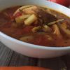 - Kapustę szatkujemy i dorzucamy do reszty warzyw. Mieszamy i zalewamy gorącym bulionem. Wsypujemy sól, pieprz oraz paprykę wędzoną