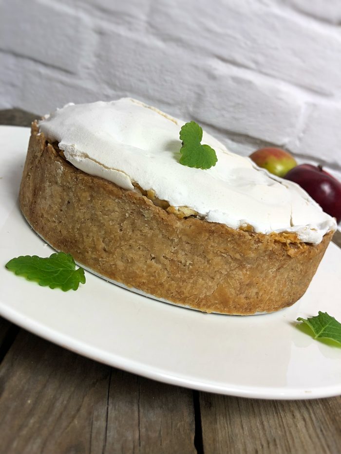 - Jabłka wykładamy na przestudzony spód, przykrywamy bezą i pieczemy, a raczej suszymy, przez około 2 godziny w temperaturze 100 stopni.