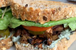 - Usmażone boczniaki mieszamy ze śmietaną, ryżem i serem. Na podorędziu miałem ser w plastrach, więc go pokroiłem, by rozprowadził się po całym farszu. Jeśli dysponujesz serem tartym, spokojnie też go możesz dodać.