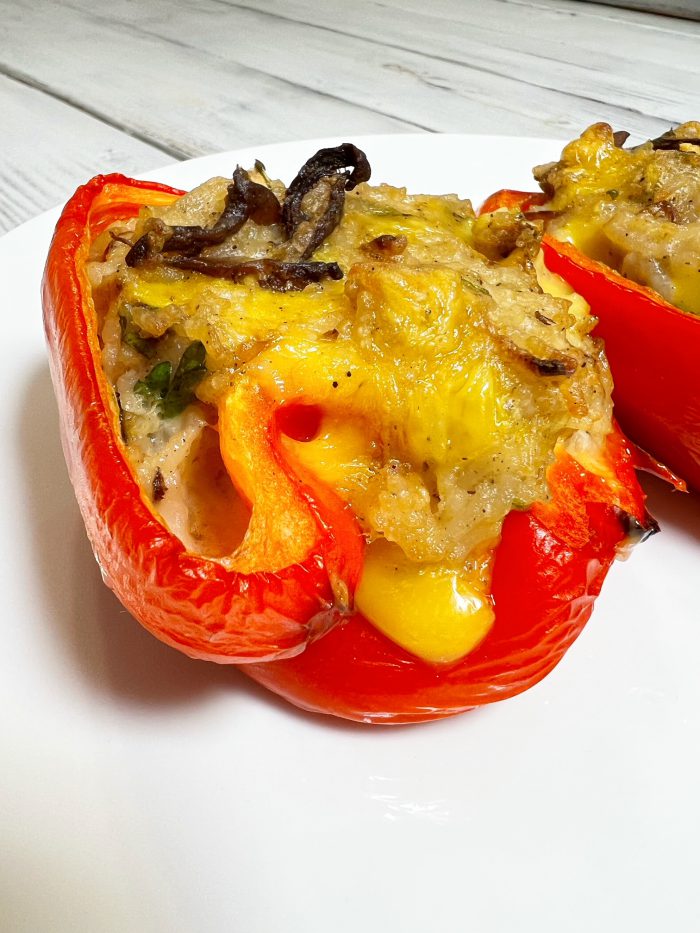 - Tak przygotowane papryki wkładamy do piekarnika rozgrzanego do 180 stopni. Przez pierwsze 15 minut pieczemy używając opcji „grzanie góra- dół”, na kolejne 10-15 minut przełączamy na „termoobieg”