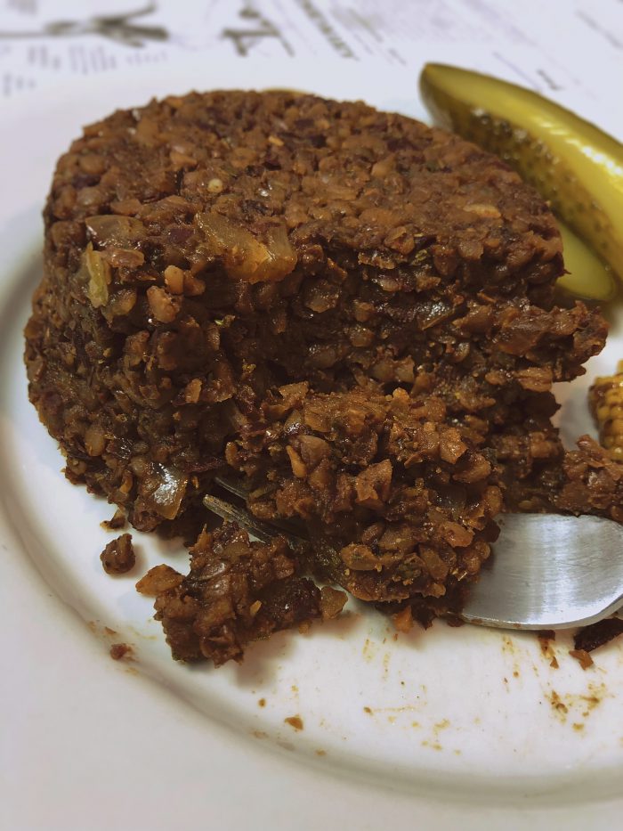 Miałem już kilka podejść do wegańskiej kaszanki, nazywanej w półświatku kulinarnym żużlem. Za każdym razem, gdy po obiedzie zostawała porcja kaszy, lawirowałem pomiędzy przyprawami, żeby uzyskać smak, który cały czas pamiętałem. Dzielnie podejmowałem kolejne próby, ale za każdym czasem czegoś brakowało, lub czegoś było za dużo. W związku z tym, że nie uznaję w trakcie gotowania pojęcia „dobre”, wszystkie działania dążyły do uzyskania najwyższego stopnia zajebistości. Wczoraj po raz kolejny z miski zerkały na mnie małe kulki kaszy gryczanej. Miałem wrażenie, że każda z nich ma delikatny wytrzeszcz i zerkają na mnie małymi oczkami. Wydawać by się mogło, że wywierają na mnie presję, ale one tym spojrzeniem tylko zachęcały mnie do działania. Udało im się! Zdecydowałem podjąć kolejną próbę i przypomniałem sobie, co mówiła Jola Słoma z Atelier Smaku. Postanowiłem dorzucić kluczowy, magiczny składnik, jakim okazała się melasa karobowa. Co prawda nie jest to stuprocentowy smak swojskiej kaszanki w naturalnym flaku, ale wrażenia smakowe są bardzo zbliżone. W momencie, kiedy łączysz ją z kiszoną kapustą i ziemniakami, masz wrażenie, że cały świat klaszcze jak chórki u Rubika.